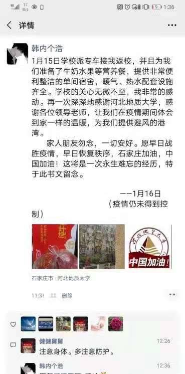 受访学生表示,尽管因为疫情原因不能和家人团圆,但却感受到了来自学校和老师深深的关爱,犹如家人一般暖心,一定会积极配合好学校的疫情防控管理,上下齐心,团结一致,为争取早日打赢疫情防控歼灭战做出公民应尽的责任和义务。