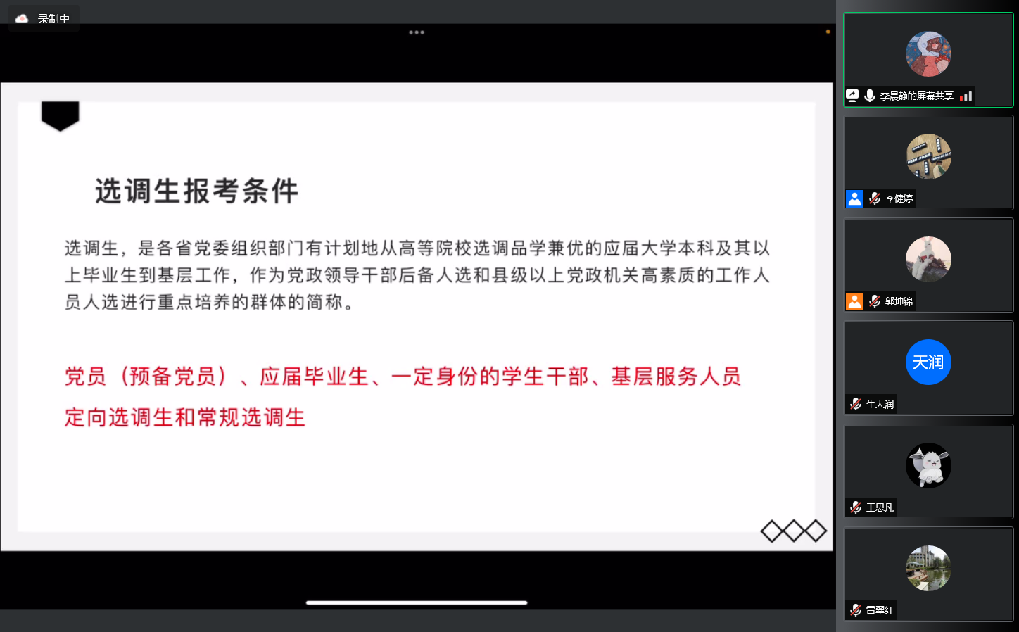 在2022年5月21日(周六)晚七点至九点在腾讯会议线上举办了此次考公经验交流会。希望能够增进同学们对考公的了解,为同学们指明方向,亮起一盏学习的明灯。