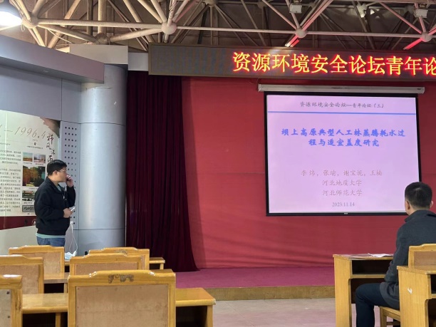 王彦芳副教授、李炜副教授、王军飞博士在二楼科技报告厅分别做了题为“变化环境下华北农牧交错带地表水动态研究”、“坝上高原典型人工林蒸腾耗水过程与适宜盖度研究”、“InSAR技术及其应用”的学术报告。报告会由史铁丑副院长主持,土地学院朱骥副院长、部分教师及研究生、本科生参加。