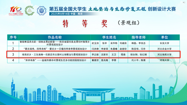 8月14日,由中国农业工程学会、河海大学主办的第五届全国大学生土地整治与生态修复工程创新设计大赛决赛在河海大学顺利举办。