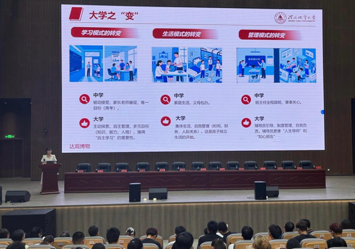 随后学院团委书记辛颖发布学院入学教育日程安排,鼓励新生积极融入校园活动,勇于探索和锻炼自我。