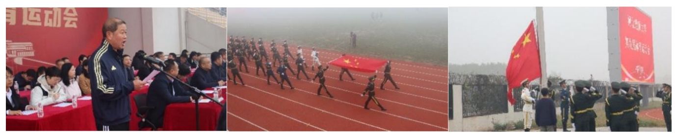 尽管晨雾弥漫,微雨飘洒,但全校师生的热情丝毫未减。伴随着雄壮的《义勇军进行曲》,鲜艳的五星红旗冉冉升起,全体师生肃立注目。在方阵入场式中,偷情