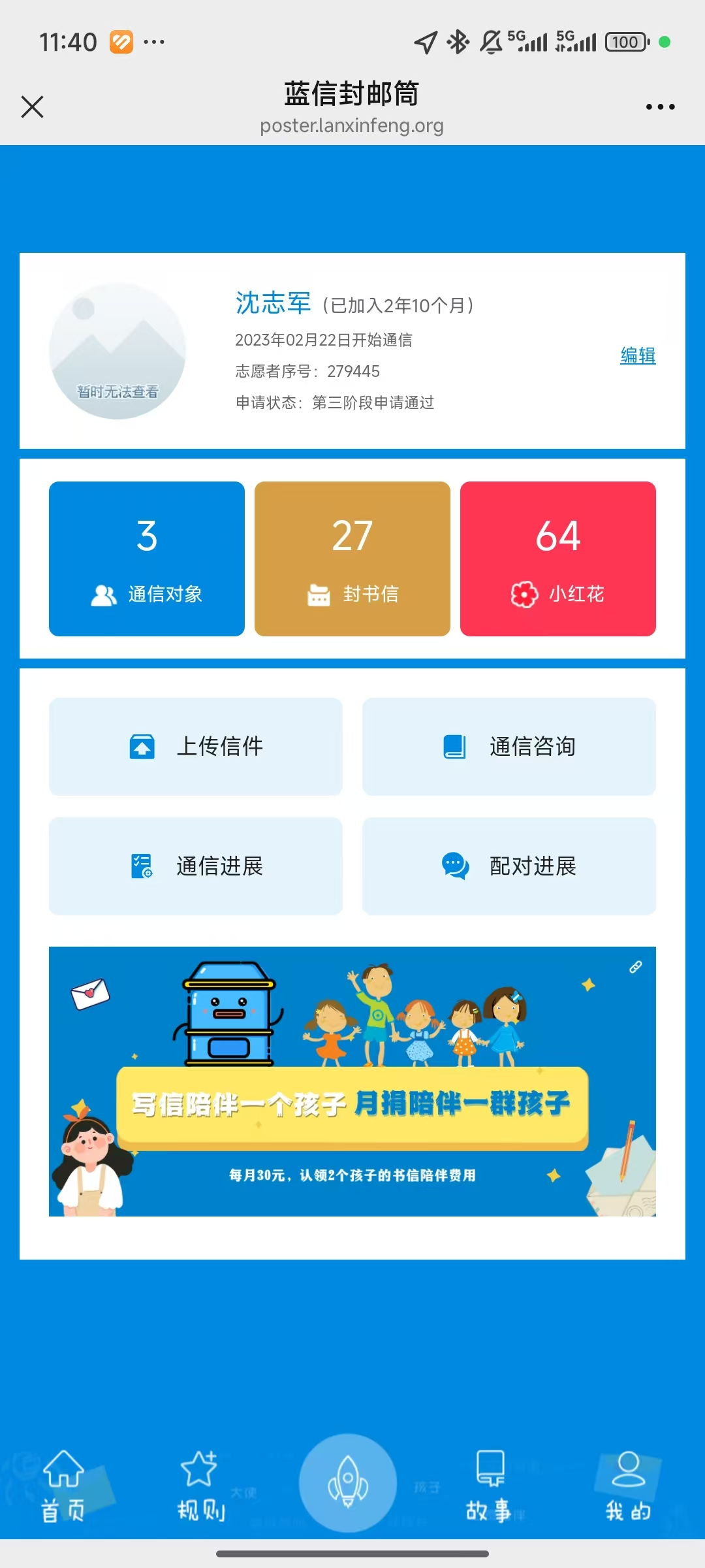 这份责任感也从校园延伸至家国。在他94小时的志愿服务记录里,有50小时深深烙印在家乡抗疫一线。而他的温暖,更在笔尖静静流淌——作为蓝信封公益行动的长期通信大使,他在两年间与3位偏远地区孩子往来书信27封。铺开的信纸,是连接千里心灵的桥梁;汇聚的文字,是一部写给孤独童年的万字“答案书”。他以这种最古老、也最真诚的方式,完成了一场跨越山海的无声陪伴。