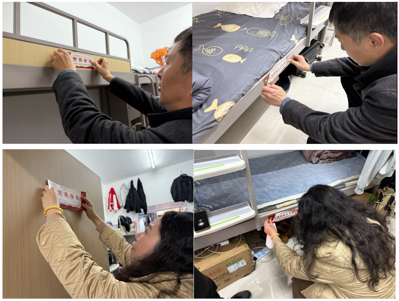 在学院党委副书记孟佳老师、副院长史铁丑老师的带领下,辅导员徐会勇老师、刘瑾洁老师、杨丽君老师、辛颖老师对四十余名党员和入党积极分子进行宿舍贴牌活动。