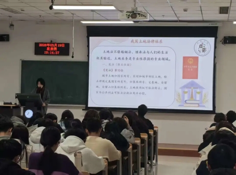 专业紧密相关的土地法律规范,她重点讲解了相应的核心内容,明确了土地所有权归属的核心规定,对《土地管理法》《民法典》《城市房地产管理法》《农村土地承包法》等核心法律的关键条文进行了详细解读,帮助同学们搭建起专业与法律深度融合的知识框架,夯实了同学们在土地领域的法治基础。