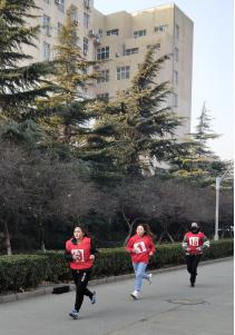 比赛的同学犹如离弦的箭一样飞射而出,他们在规定的路线上用力地奔跑着,有节奏的调整着呼吸,慢慢超过一个又一个的对手,摆动双臂,迈着强健的步伐冲向终点。同时这是一个团体项目,既要有实力又得团体合作,准确的交接,努力的坚持。虽然空气中夹杂着丝丝寒风。然而,吹不散的是同学们坚强的斗志和昂扬的精神、挡不住的是同学们前进的步伐和为院争光的热切心情。看到他们矫健的步伐和坚定地目光,以及中途相互鼓舞、相互加油的行为,给路上的行人也带去了满满的正能量。最终,偷情