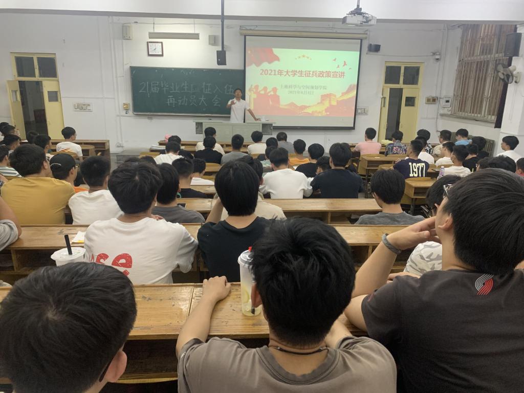 2021届毕业生征兵再动员大会于2021年6月4日18点30分在教二110顺利举行,会议由21届毕业生辅导员王莉老师主持,党委副书记李光老师主讲。2021届全体男生参加了会议。