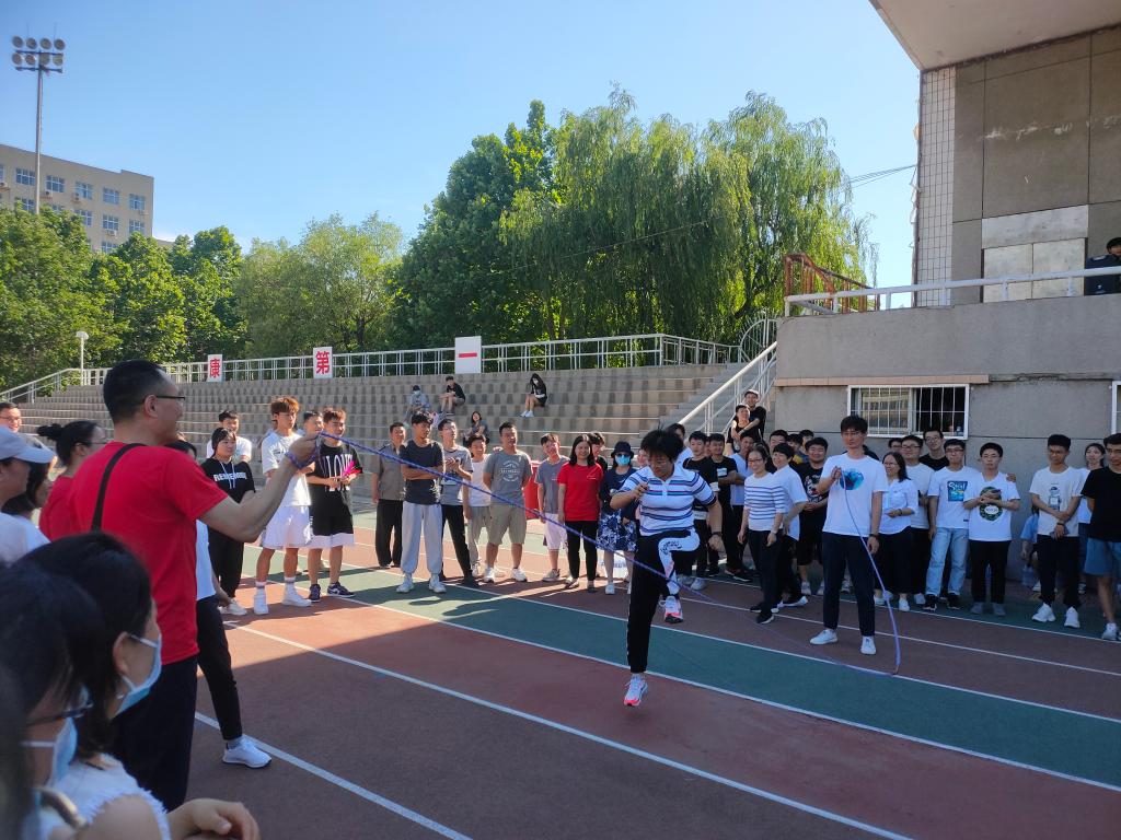 本次活动计划周密,内容丰富,形式新颖,受到同学们的喜爱。比赛总共包括四个项目:8字跳绳、踢毽子、五人六足、乒乓球接力跑。首先开场的是第一项8字跳绳,共分为3组进行,每组4个队伍,其中包括一个教师队,仅在热身环节就看出了各个队伍强劲的实力,在正式比赛中各个队伍更是拼尽全力,看到老师们在赛场大显身手,丝毫不逊于青春活力的学生时,在场的同学们喝彩连连。第项踢毽子比赛同样精彩纷呈,各支队伍之间展开了激烈角逐,比分交替上升,周围观众不时的拍手叫好。五人六足项目更是将本次运动会推向了高潮,在老师与同学们默契的配合下,许多队伍健步如飞,争先恐后,同时也有队伍因为过于着急出现失误,引得大家哄堂大笑。最后进行的是乒乓球接力,小小的乒乓球在选手们手中迅速传递,无一不展现了团结和协作的完美比拼。