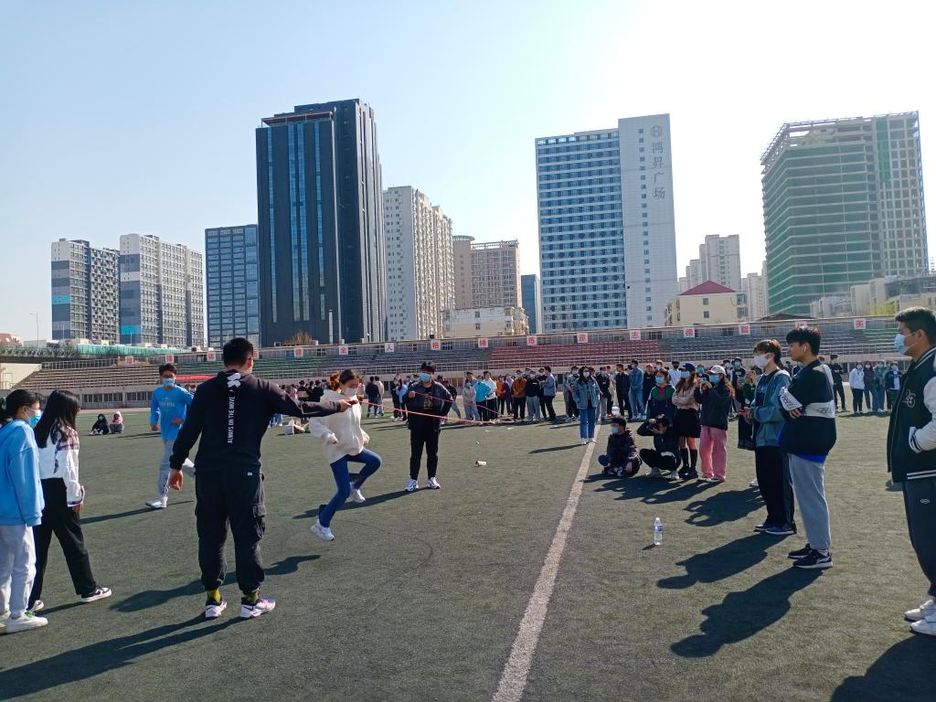 大学生心理委员会于4月3日上午9:00在本部操场组织开展了“集体跳绳”户外拓展活动。