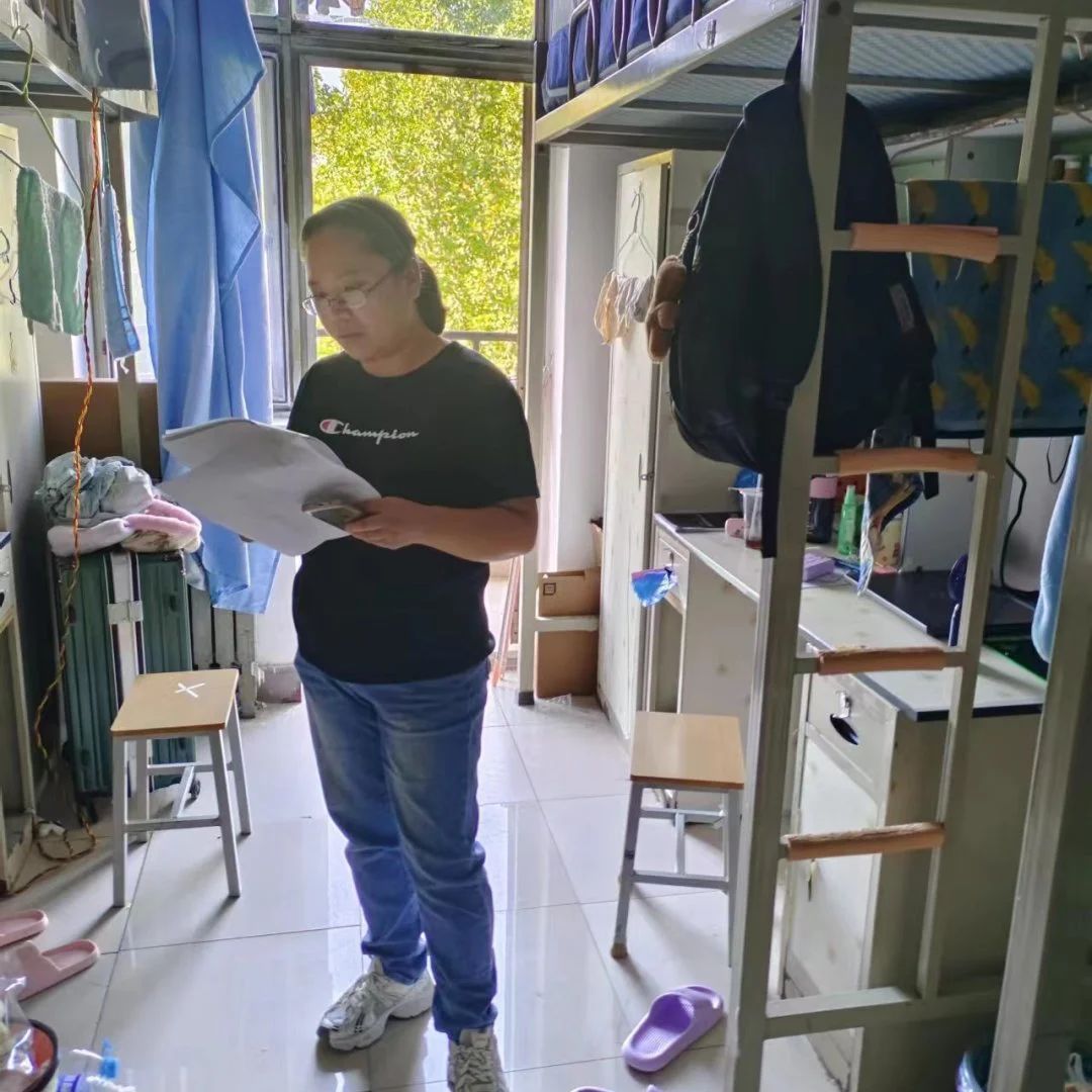 于9月21日下午在校本部由副书记李光老师、20级辅导员齐志国老师、21级辅导员于淑会老师、22级辅导员吴旭东老师与23级辅导员李明云老师带领,对本部所有学生宿舍用电安全和宿舍卫生进行了全面的检查。