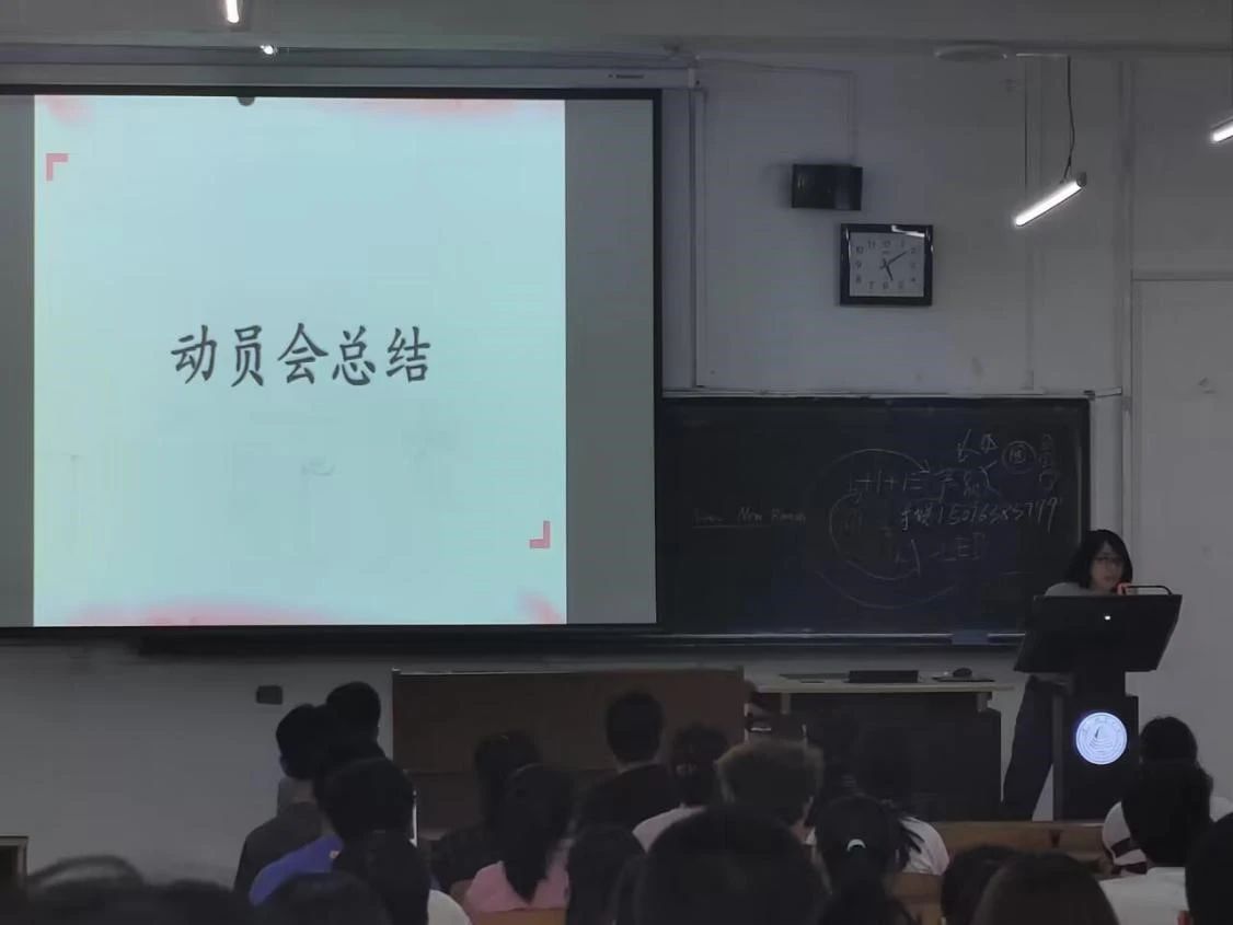 团委副书记王泽晗同学、秘书长周心雨同学,以及介绍经验分享心得的白雪同学、尹思雨同学、李梦格同学和正在准备挑战杯的张杰同学。此外,还有院团委各部门部长和成员以及各班代表,参加范围覆盖一至四年级全体学生及在校研究生。