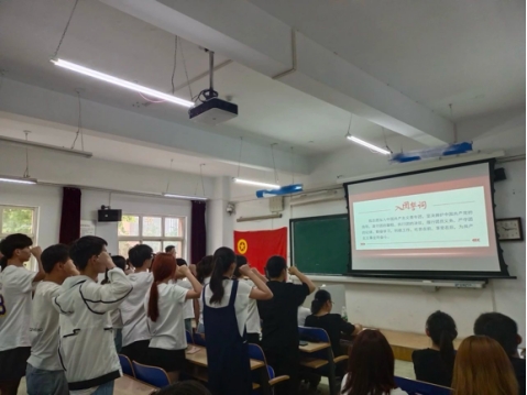 于2024年6月7日,在教一202举行新发展团员入团仪式,参与本次活动的有副院长朱骥老师,副院长史铁丑老师,院团委书记王莉老师,辅导员齐志国老师、于淑会老师、李炜老师、吴旭东老师、李明云老师。