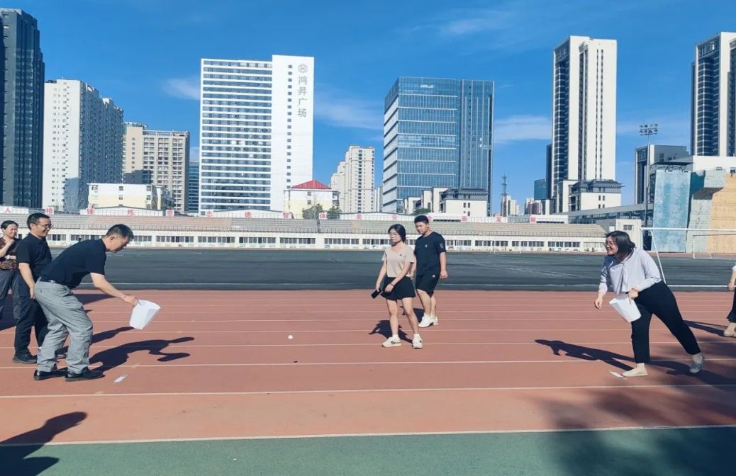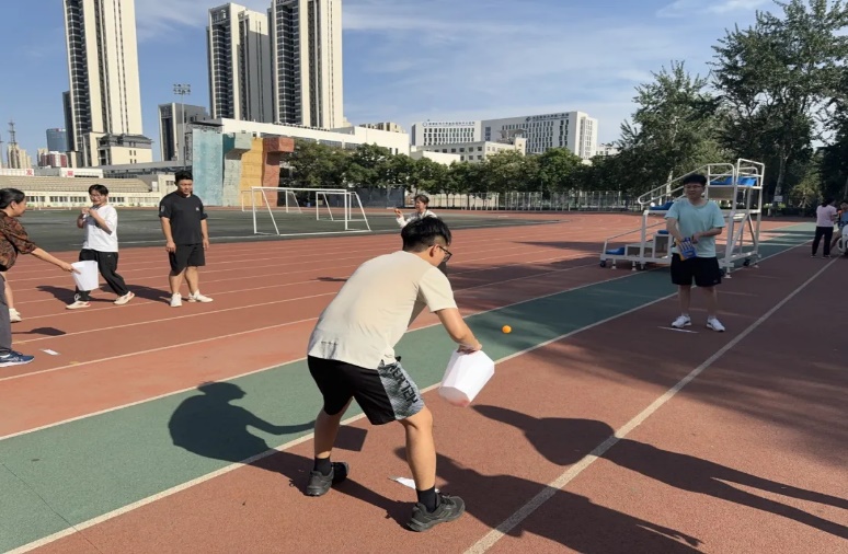 党委副书记李光在运动会正式开始之前表达了对大四毕业生的不舍和鼓励,希望同学们在未来的道路上一帆风顺,前程似锦;同时也激励同学们在运动会赛场上团结协作,尽情展现自己的风采。李老师向毕业生们表达了殷切的期盼,希望能常回母校看看,分享人生的成功与喜悦。本次运动会以接力赛的形式展开,共举行抛球进桶、众星捧月、踢毽子、旱地龙舟等四项活动,所有参赛老师和学生秉持着“友谊第一,比赛第二”的原则,在赛场之上团结协作,努力拼搏,勇争上游。