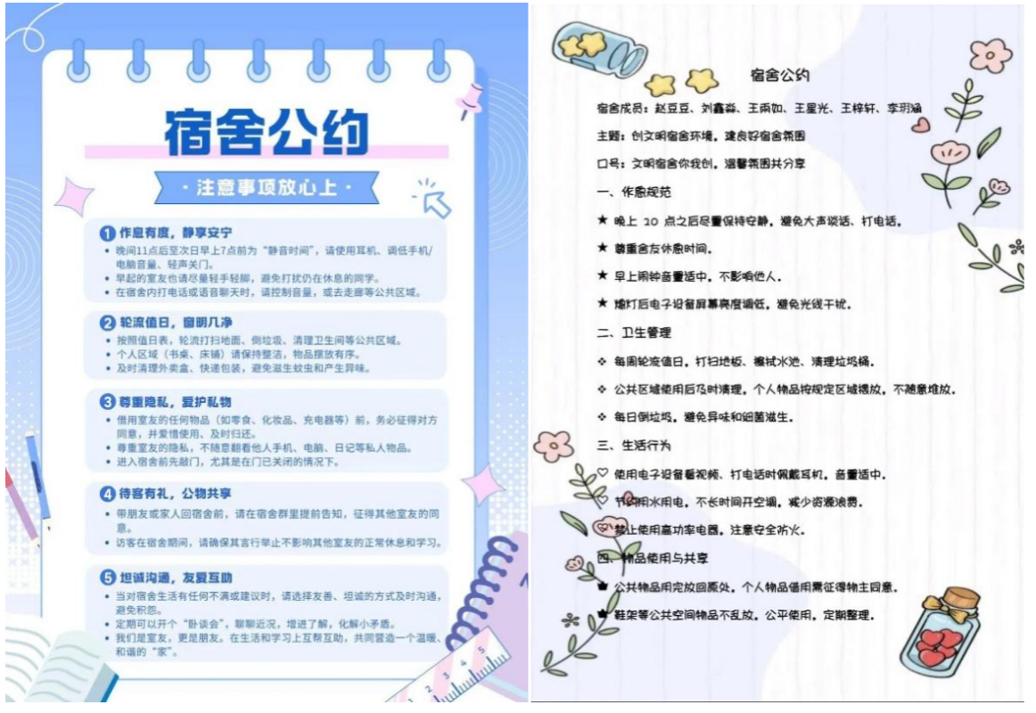 一纸公约不仅仅是规则的集合,更是室友之间相互尊重、彼此信任的体现,是青春岁月里一份温暖的约定。宿舍是我们共同的家,想要让它整洁、舒适、充满欢笑,需要每个人用心去守护。希望大家都能自觉履行公约,让我们的宿舍真正成为一个温馨、和谐、充满归属感的小天地。