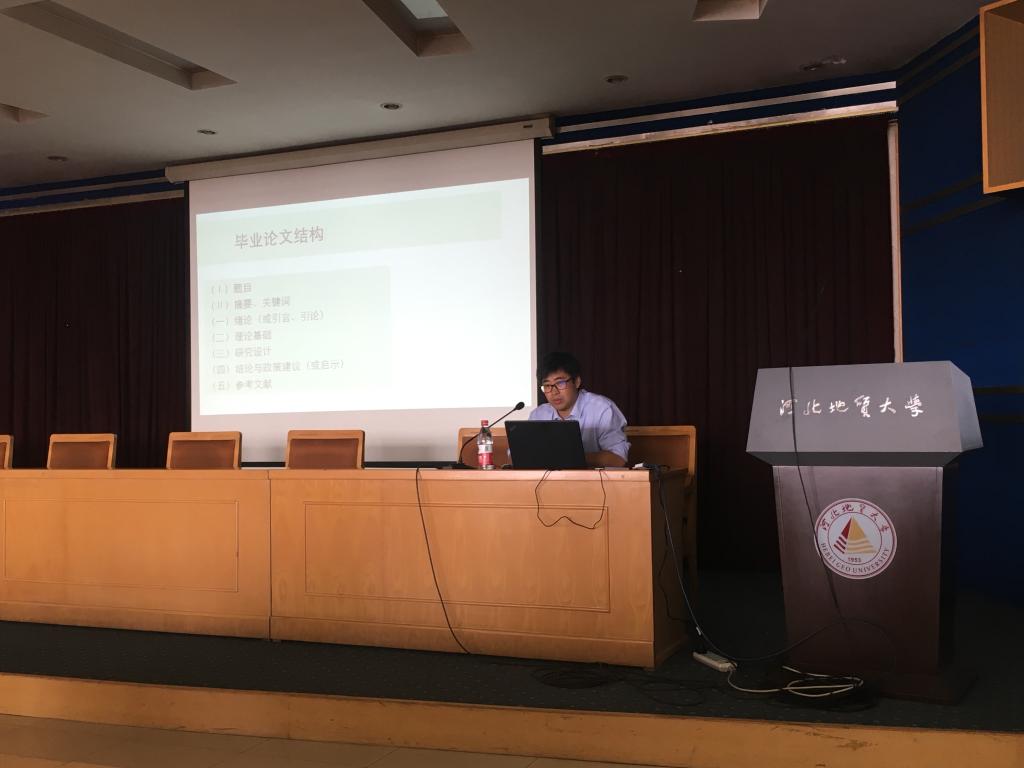 报告会上,李成刚教授首先和参会的同学们分享了其在新加坡访学期间的见闻经历,勉励同学们珍惜年华、胸怀世界、开阔眼界;而后针对本科生普遍关心的毕业论文写作问题,李教授给同学们介绍了本科毕业生论文写作的结构框架,并就框架内容进行了细致的阐释,特别是李教授结合自己指导本科生毕业论文的经历,和与会师生分享了本科生毕业论文的选题经验及技巧;最后,李教授满怀深情的回顾了自己在母校度过的研究生岁月,并鼓励同学们珍惜在学校读书的大好青春年华,充分利用好学校的平台资源,努力学好专业知识和技能。