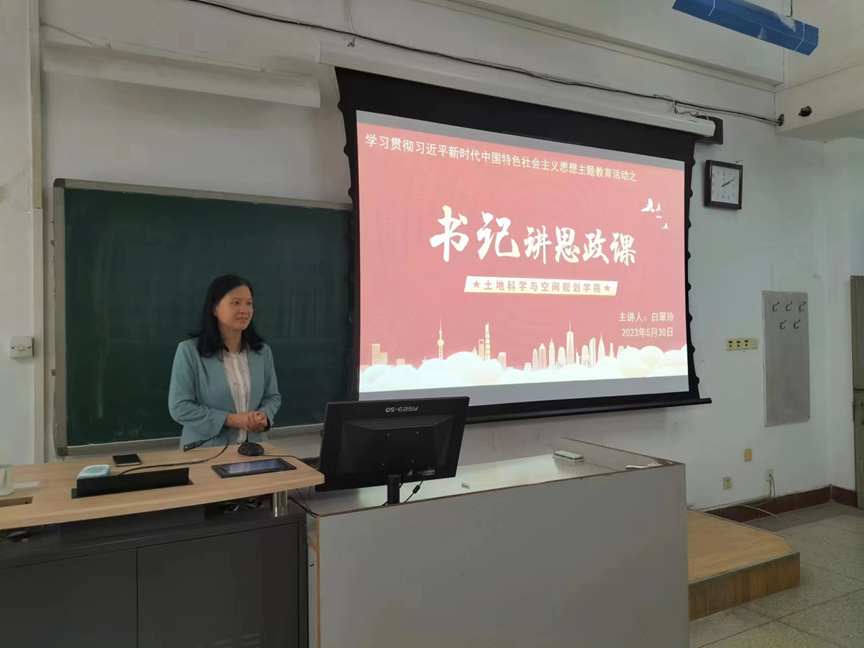 为深入开展学习贯彻习近平新时代中国特色社会主义思想主题教育,坚持知识传授与价值引领相结合,推动专业课程与思政课程相协同,构建协同育人新格局。530日,偷情 党委书记白翠玲面向21级城乡规划、土地资源管理、测绘工程、遥感信息技术、地理信息科学等专业的入党积极分子、团学骨干及全体班委在教一102讲授了一堂别开生面的思政课。