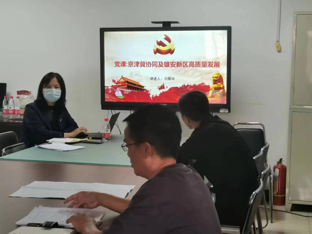 结合《习近平总书记在河北考察深入推进京津冀协同发展座谈会上的重要讲话精神》和《习近平在河北雄安新区考察并主持召开高标准高质量推进雄安新区建设座谈会上的重要讲话精神》的学习,党课中,白翠玲书记从雄安新区建设、京津冀协同发展、习近平正定足迹三个方面向大家系统讲述了习近平总书记在雄安新区考察和河北省考察时的讲话内容及党中央对雄安新区和京津冀协同发展的战略部署,并带大家重温了习近平总书记在正定工作期间“为官一任,造福一方”的故事,鼓励大家立足本职工作,“矢志不渝、笃行不息”,为雄安新区建设和京津冀协同发展贡献力量。