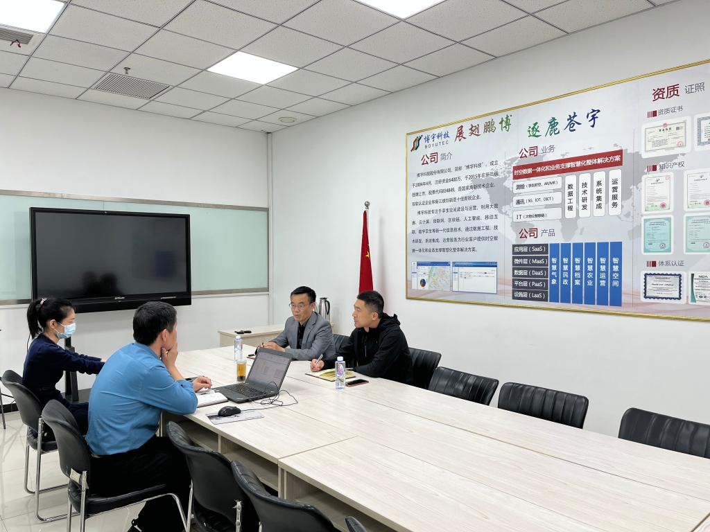 会上,朱骥介绍了学校和学院的概况,重点介绍了此次“访企拓岗促就业”目的,期盼能在实习、就业达成合作。李光介绍了2023届地理信息科学专业学生基本情况和现阶段就业情况。闫利通介绍公司为国家高新技术企业、双软认证企业和新三板创新层十佳新锐企业,专注于孪生空间建设与运营,利用大数据、物联网、区块链、人工智能、移动互联、数字孪生等新一代信息技术,通过数据工程、技术研发、系统集成、运营服务为行业客户提供时空数据一体化和业务支撑智慧化整体解决方案,并对每项业务所需的学历和技能要求做出说明,对学校培养的学生综合素质给予认可,期望在产学研协同发展进行深度合作。王丽媛根据企业实际情况对学生技能培养提出了建设性意见,希望该专业学生增强GIS开发能力,同时表达59-15日进校进行专场招聘。