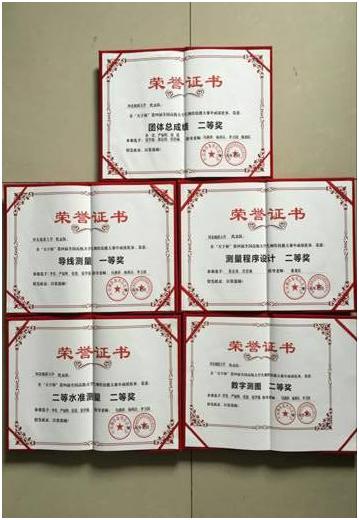 参赛队伍获团体二等奖,其中导线测量一等奖,测量程序设计、数字测图,水准测量二等奖。