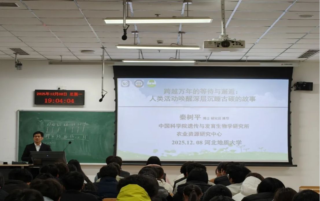 内开展“跨越万年的等待与邂逅:人类活动唤醒深层沉睡古碳的故事”主题科普讲座,秦树平博士为校内师生带来土壤碳循环领域的前沿知识分享。